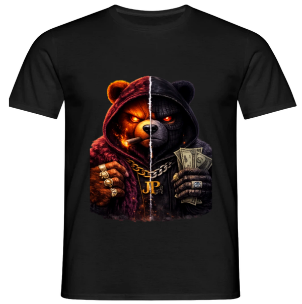 De JP Street KingT-Shirt laat de rauwe realiteit van street power zien. Dit exclusieve design toont het iconische JPBeertje in een split-stijl: één kant vuur en goud, de andere kant donker en ijskoud. Macht, focus en controle komen samen in één krachtige visual.